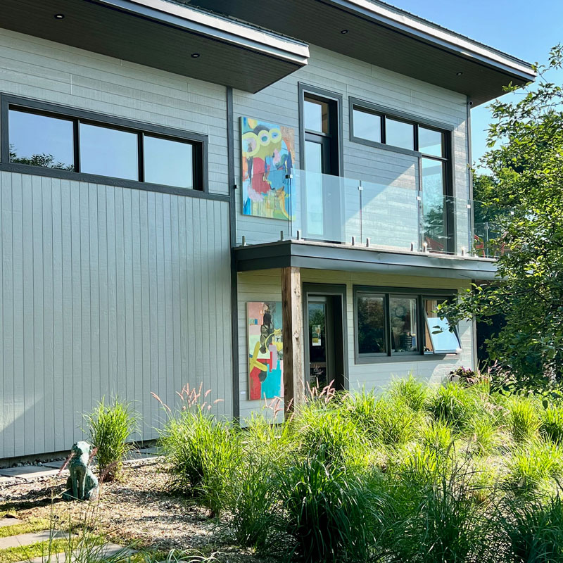 Today, her practice focuses on two main media: materials recovered from everyday objects (Nespresso capsules) and paint. Between the rigorous, meticulous work of recycling aluminium capsules and the freedom and spontaneity of painting, colour is the main constant in her work. One practice inspires the other, and the two creative territories sometimes mix to give rise to new explorations.